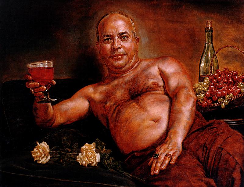 Bacchus196330" x 39", oil on masonite large view This painting shows Safran's best friend as the Roman god of merry-making. It was first shown along with other biblical and mythological paintings at the Fitzgerald Gallery in New York City in 1966. This was Safran's first solo show, and it was not favorably reviewed by the critics. It should be remembered that the New York art scene in the 1960s was dominated by Abstraction, Op Art, Pop Art and other forms of conceptual art. In that milieu, Realism was ridiculed as old-fashioned if not downright eccentric. Fortunately, since that era the scope of what kinds of art can be taken seriously has broadened substantially. |